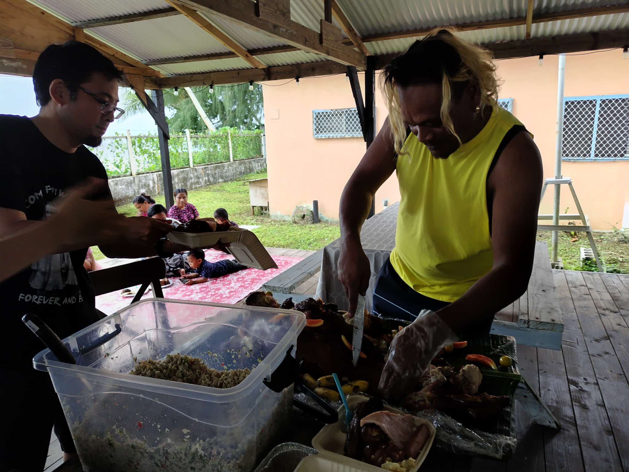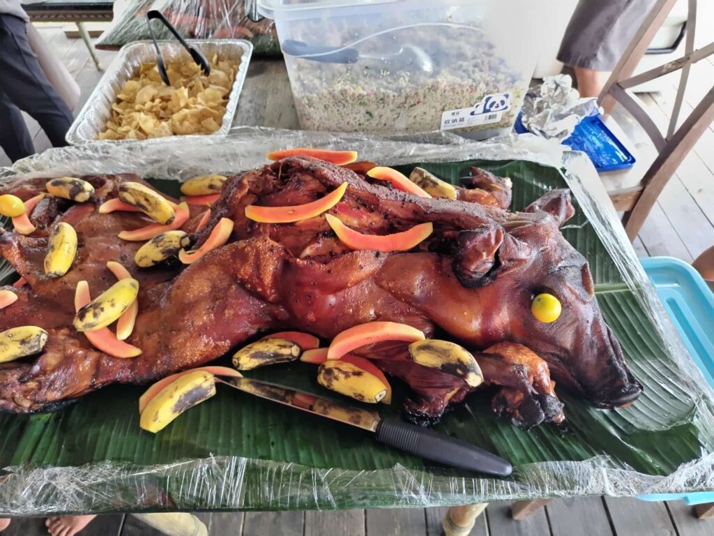 さらに今回は豚の丸焼きと、グアムのチャモロ料理も追加され、豪華な内容となりました。みんなも大喜び。