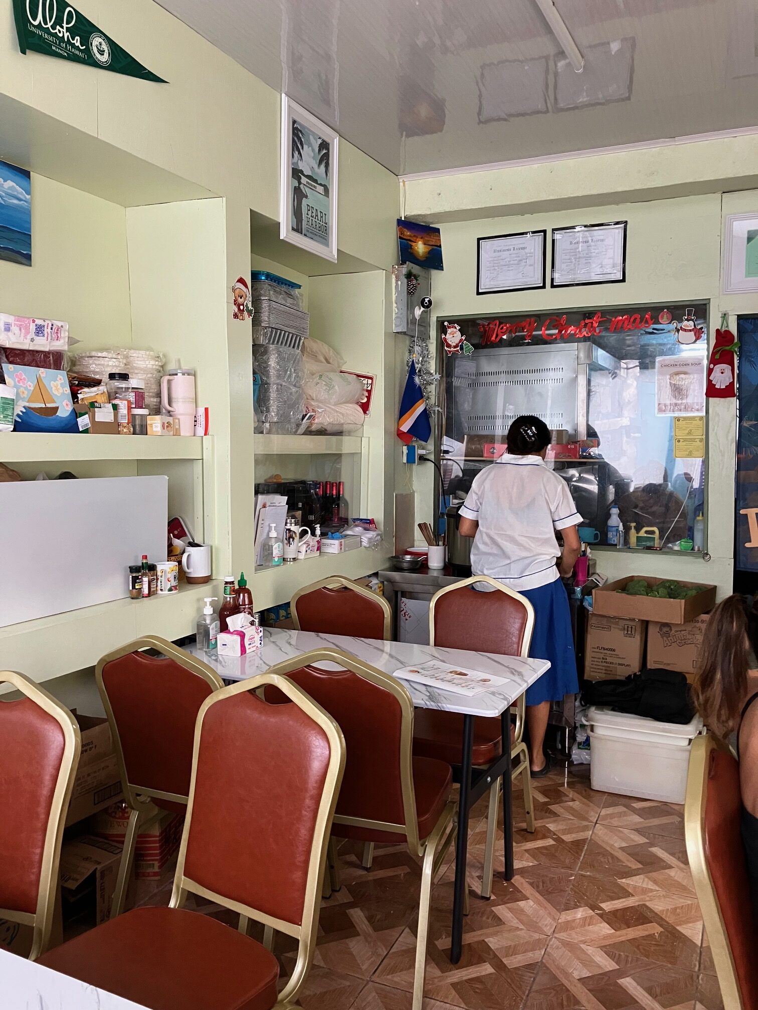 以前はK&K近くのバックロードで営業していましたが、移転先はMJCCからリタ方面へメインロードを500m程進んだ先のラグーンサイド。水色の建物で、併設のコインランドリーが目印です。