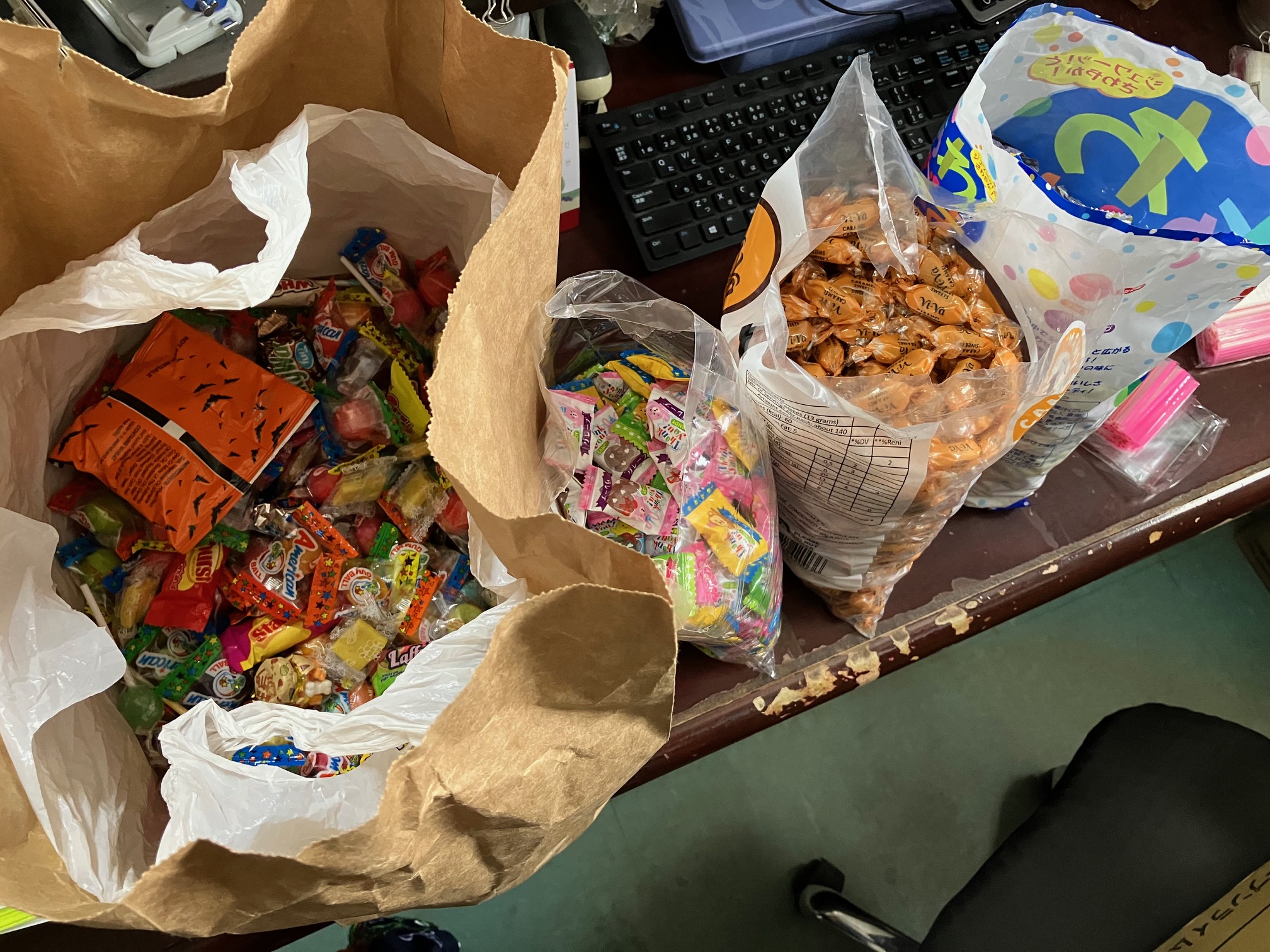 せっせと頑張って400袋くらい用意しました。サンタクロースの大変さが身に染みて分かりますね。指からしばらく甘いにおいがしました。