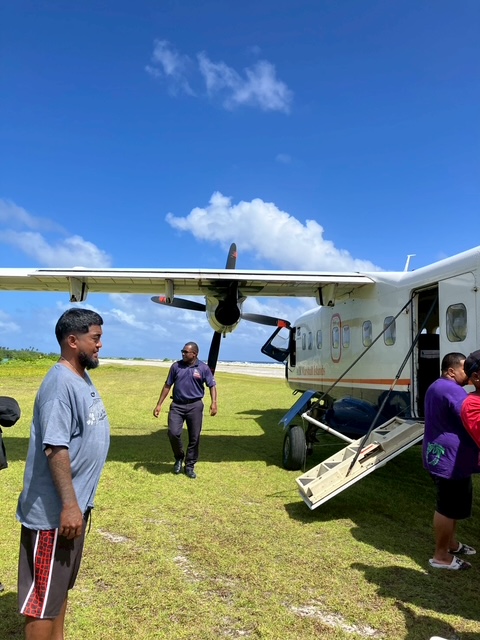 見慣れた原っぱに着陸します。もちろんジャルート環礁の滑走路も旧日本軍が造ったもの。