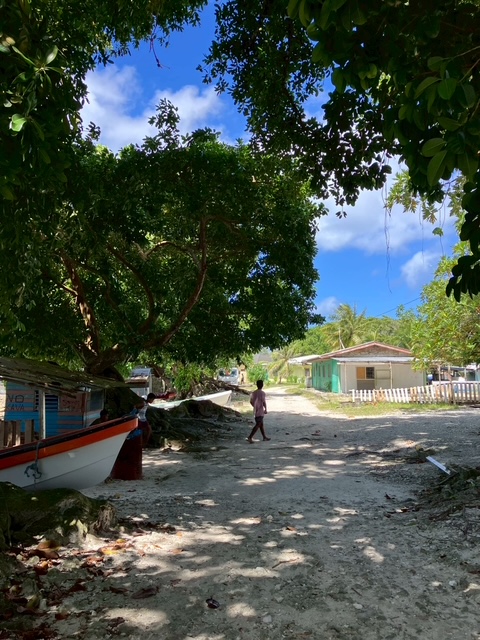 ジャルート環礁の中心街は空港から車で10分ほどの場所です。中心といっても、建物があるのは徒歩片道10分、往復にしても20分くらいの短い距離の中だけ。ここに1,000人強の人々が暮らしているというから驚きです。