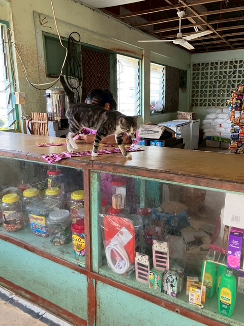 ショーケースに並んでいるのは缶詰や即席めん、お菓子、石鹸などの日用品。生野菜や果物はありませんし、私が行ったときは卵もパンも牛乳も品切れでした。この島の人たち、いったい何を食べて日々暮らしているんだろう・・・釣った魚やココナッツなどなど?