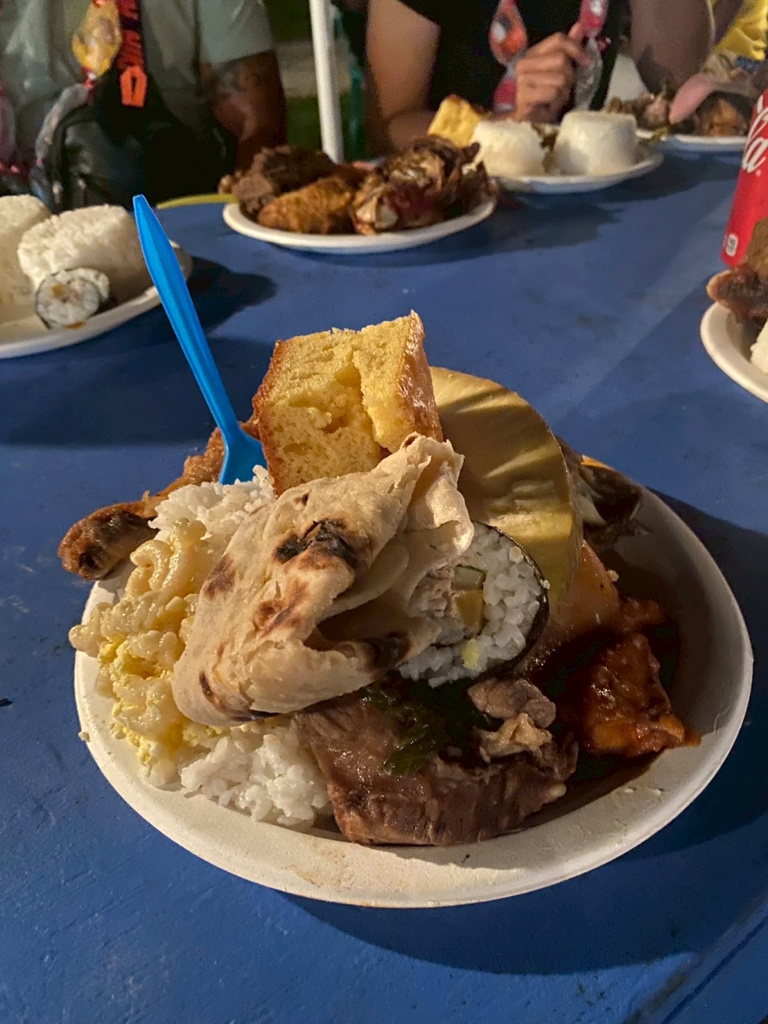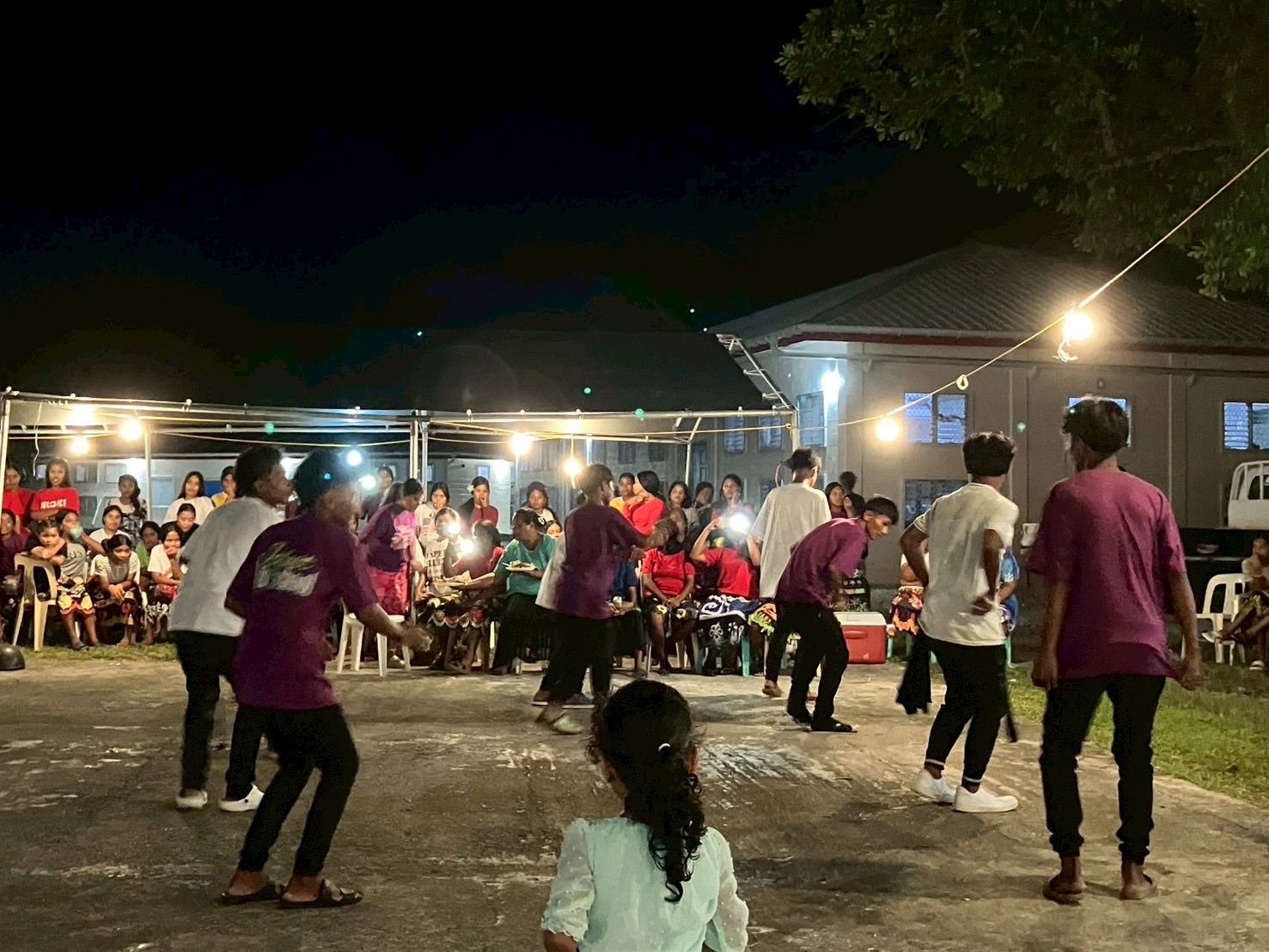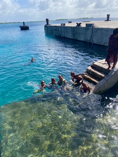 パーティーでのお料理。巻き寿司、ケーキ、フライドチキン、牛肉の煮込み料理、パンの実のふかしたやつ、マカロニサラダ等々・・・前述した食糧事情であるからこそ、どれだけ特別な一皿か身に染みてわかります。なんの縁もゆかりもない私たちをこれでもかともてなしてくださることに若干の心苦しさを感じつつも、ありがたく頂戴しました。マジュロから持ってきた缶詰とラーメンで生活していた胃に、染み渡る美味しさです。思わず無言でひたすらもぐもぐ・・・