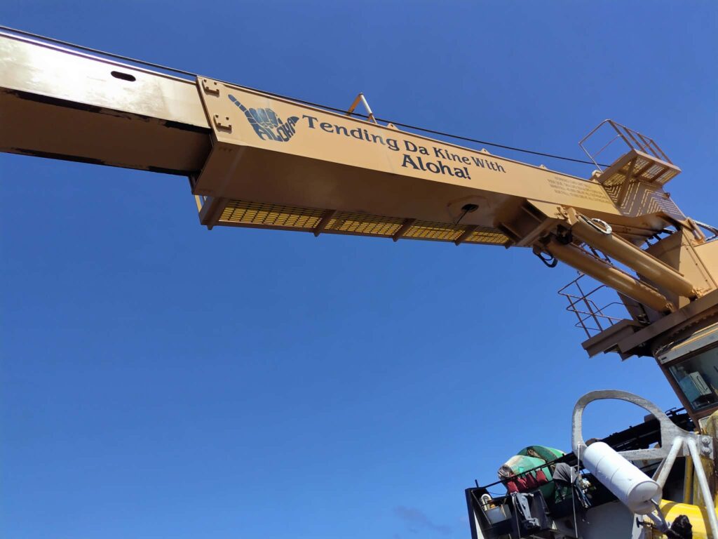 船には重量のあるブイを持ち上げられる大きなクレーンが搭載されていました。ハワイから来た船とのことで、クレーンに書かれたイラストにもハワイらしさが感じられました。
