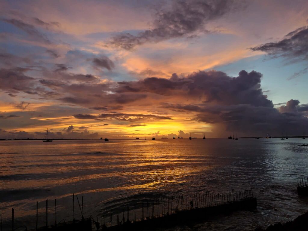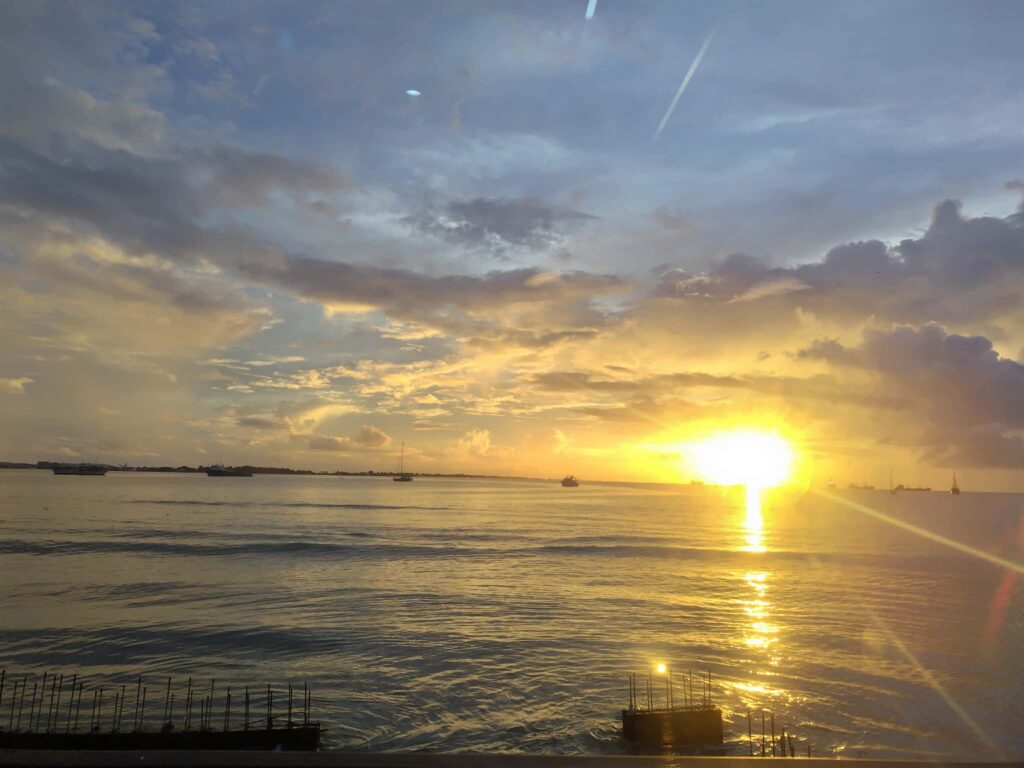 天気が良ければ、午後6時30分ごろから美しい夕焼けが見られます!ラグーンに沈む夕日を眺めながらの食事は格別です。